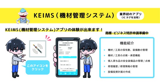 『KEIMS(機材管理システム)』の展示をはじめ、当社技能五輪選手によるデモンストレーションや、高所作業用セーフティエアマットの実演などを行います。このほか、リクルートの取り組みとして採用に関する会社説明のブースも設けます。ぜひご来場ください。