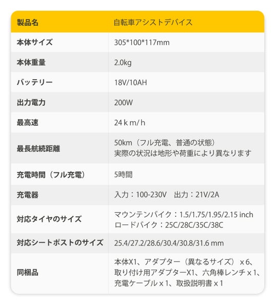 内蔵バッテリーがあり、フル充電で最大50kmの走行距離をサポートします。充電時間がわずか5時間で、より迅速なサイクリング体験を提供できます。