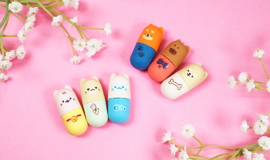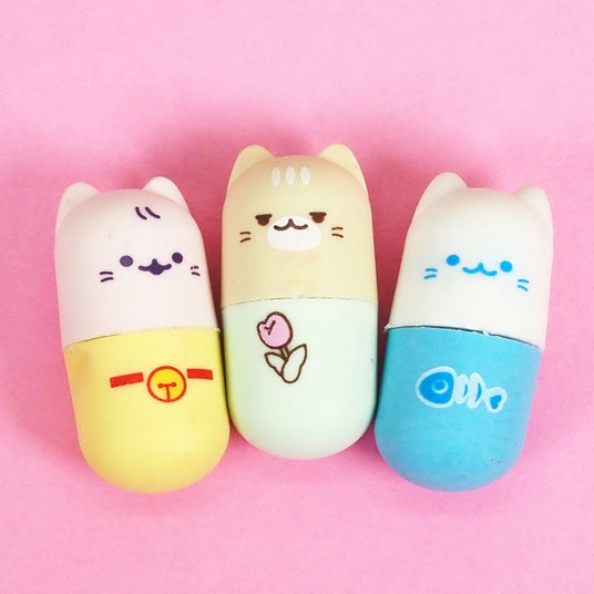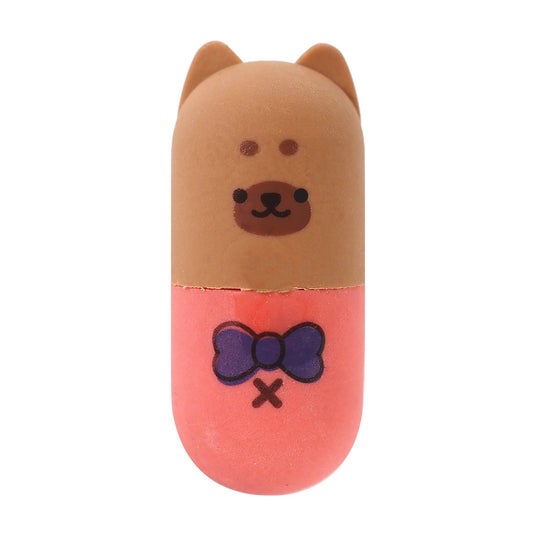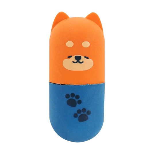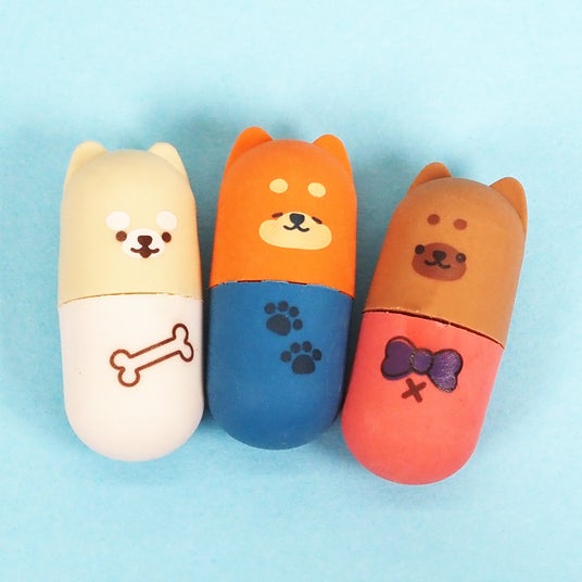 かわいい犬や猫の姿がカプセル型の消しゴムに。パーツは上下で分かれる仕様なので、組み合わせて