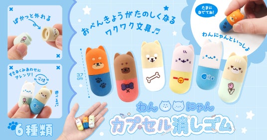 ペンケースに入っていたら思わずにっこり♪「わんにゃんカプセル消しゴム」が新登場です!