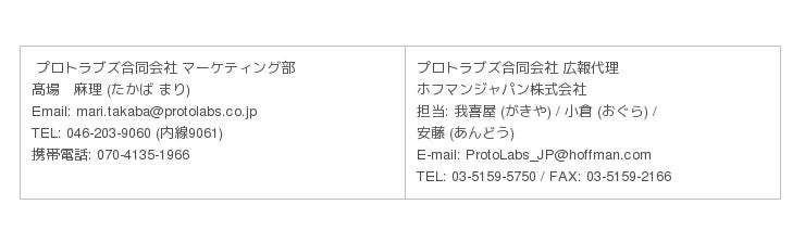 プロトラブズに関する詳細は、http://www.protolabs.co.jp をご参照下さい。プロトラブズの会社概要は、