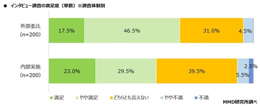 ■ インタビュー調査の満足度、外部委託は64.0%、内部実施は52.5%
