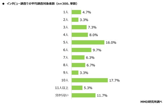 ■ 1回あたりのインタビュー調査の平均、対象者数は「10人」、