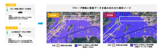 浸水・冠水域の解析結果をもとに、通行できない可能性が高いエリア・道路を把握することができるため、より迅速な災害対応や避難指示が可能に。また、災害復旧時の最適なルート情報提供など、スムーズな物流の一助となることも見込まれています。