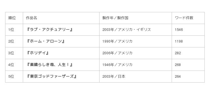 映画レビューに「クリスマス」というワードの含有数が最も多い映画は『ラブ・アクチュアリー』