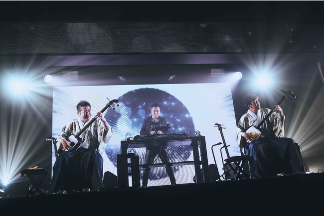 ライブでは、まず前半戦のトップバッターとして、唯一無二のプレイスタイルでダンスフロアに強烈な一体感を創り出すDJ、DAISHI DANCEと、迫力ある津軽三味線の演奏で国内外から注目を集める吉田兄弟が登場。ライブではDAISHI DANCEのハウスビートに合わせた吉田兄弟の超絶技巧による速弾きや、2人の合奏のみのパフォーマンスも披露。またライブ終盤では、EDMと津軽三味線が融合したエモーショナルかつ壮大なスケールの楽曲等が披露され、来場者を多幸感で包み込んだ。