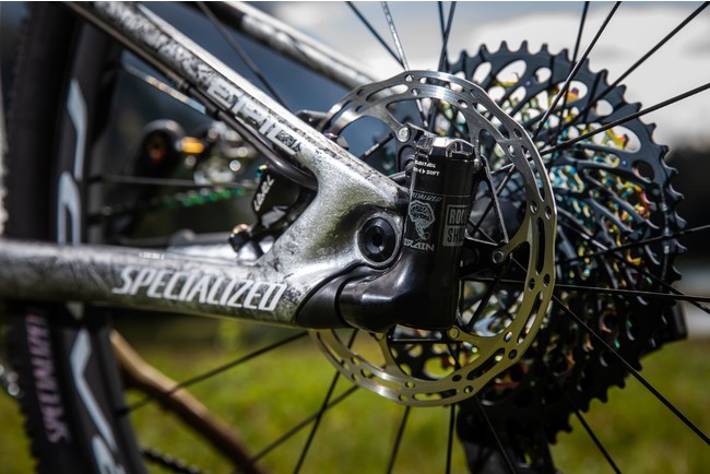 専用のレイアップスケジュールと最上級グレードのFACT 12mカーボンを採用し、ショックリンクまでカーボンで作るという徹底ぶりから、超軽量の前作よりさらに100g以上を削ぎ落とした際立つ軽さを実現。さらには効率的なパワー伝達や秀逸なハンドリング性能に焦点を当ててフレームデザインを見直し、リアトライアングルの剛性が15%向上しています。これにより、レース仕様の新しいBRAINプラットフォームをフルに活かしたペダリングが可能です。バランスに長けたサスペンション性能を誇るBRAINリアショックに合わせたのは、15mmのフリートラベルを持つPosition-Sensitive BRAINフロントフォーク。細身ながら高剛性のRockShox SID SL Ultimate SLをベースに、確かなハンドリングを可能にしつつ、重量増を招かないよう配慮しました。
