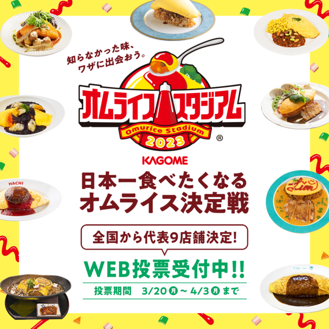 全国9エリアでの戦いを勝ち抜いた、9店舗のオムライスが遂に出揃う 決勝大会への出場をかけたWEB投票が3月20日(月)よりスタート!投票期間:2023年3月20日(月)~4月3日(月)