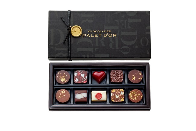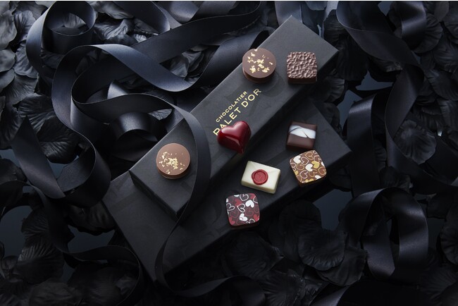 ロゴデザインの洗練されたシックな黒のボックスに、りんごのキャラメルガナッシュを詰め込んだハート型のチョコレートや、想いを伝える手紙に見立てたレターチョコレートなど、新作ショコラが入った「コフレ レザムール」。ビターチョコレートのみならずホワイトチョコレートにいたるまでカカオ豆から手掛けて自社で製造する、ショコラティエ パレ ド オールならではのバラエティ豊かな詰合せです。東京・大阪・山梨の各店と公式オンラインショップでの限定販売品。大切な方への贈り物や、自分へのご褒美ショコラにおすすめの一品です。