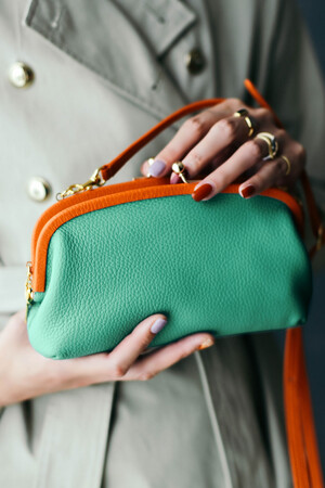 厳選された高級革を使い、色鮮やかなカラーリングでファッションに敏感な女性層に訴求。財布として使える製品に加え、スマホが入るミニショルダーなど、今どきな製品も展開してゆきます。