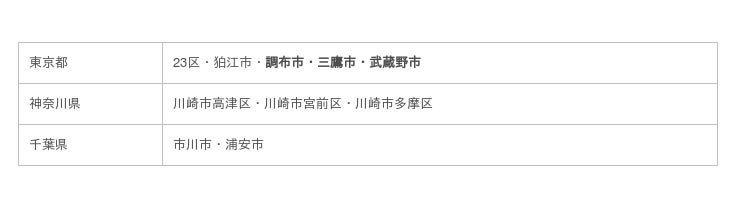 ・追加エリア: 東京都調布市、三鷹市、武蔵野市