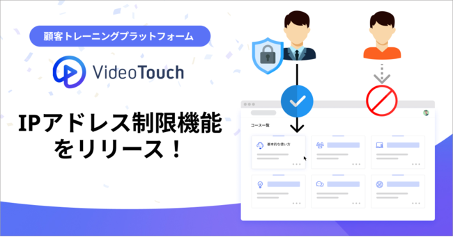 VideoTouch株式会社(本社:東京都渋谷区、代表取締役:上坂優太)は、運営する動画トレーニングプラットフォーム「VideoTouch(ビデオタッチ)」において、「IPアドレス制限機能」をリリースし、よりセキュリティの高い環境での動画研修・教育を可能にするアップデートを行ったことをお知らせいたします。