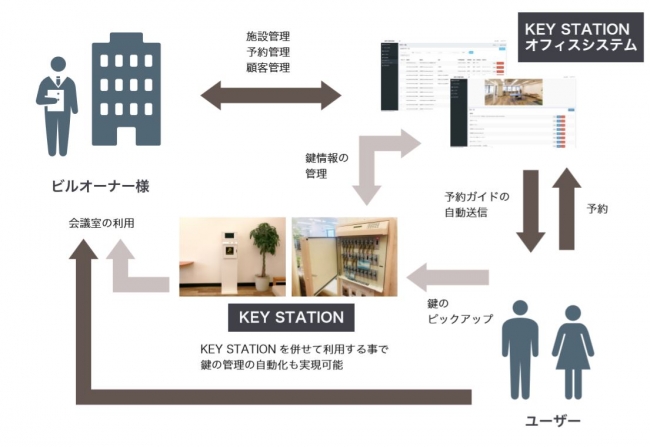 レンタルオフィス・貸し会議室向けKEY STATIONオフィスシステムは施設運営者・利用者の利便性の向上に繋がるサービスとなっています。