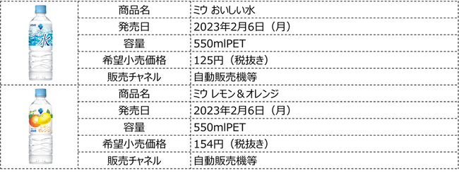 ダイドードリンコ株式会社は、2023年春夏の新商品として、「ミウ おいしい水」「ミウ レモン&オレンジ」を2月6日(月)より発売いたします。