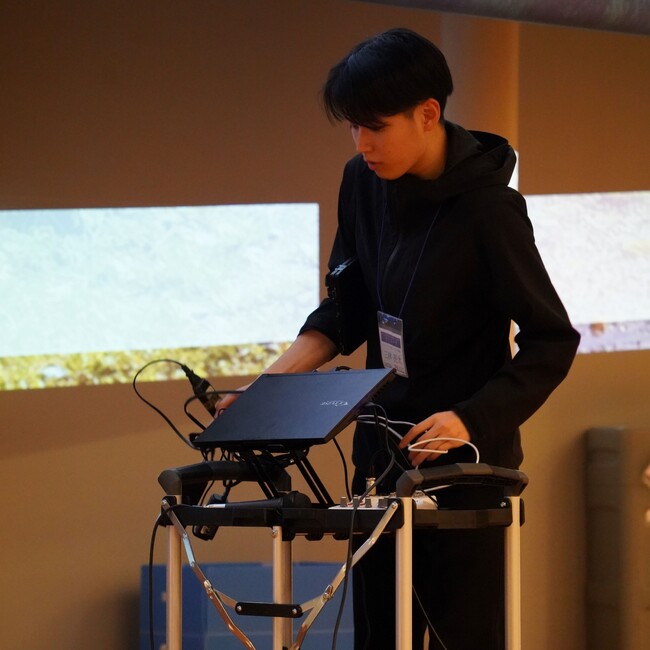 本展覧会は、オセロAI・ラップバトルAI・ガラスインスタレーション・作曲・詩歌・カチャーシーを踊る装置といった、多様な活動を展開する6人の作家たちによって構成されています。作品の展示を通じてそれぞれの制作過程や制作への動機、問題意識をオープンにすることで、鑑賞者と作者のあいだにアフォーダンス的な対話を引き出すことを目的としています。自分たちでさえ気づかないあいだに、新たな思考や価値観が生まれ、視界がひらけていくような経験を、ともに模索するための試みです。