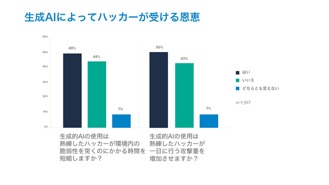 回答者の 50% は、AI によってハッカーがより多くの攻撃を仕掛けることができるようになると考えている。
