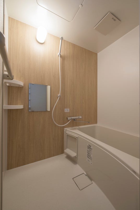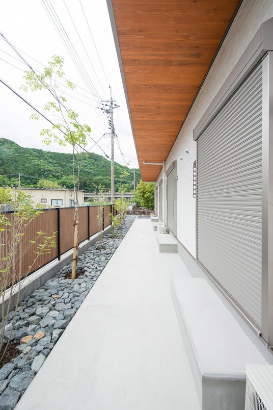 本建物は水平構面にCLTパネルを利用した木造軸組工法2階建てで、軒天と共用廊下および階段の天井をCLTの現し仕上げとし、併せて木目を基調とした内装とすることで木のぬくもりを感じられる住環境を実現しました。