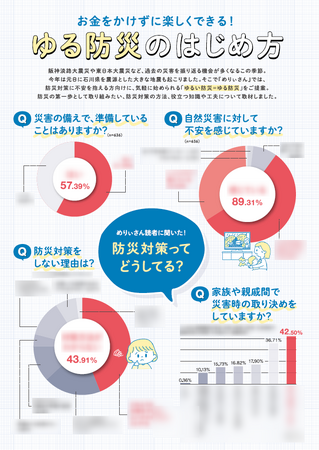 今年は元日に石川県を震源とした大きな地震も起こりました。そこで、めりぃさんでは防災対策に不安を抱える方向けに、気軽に始められる「ゆるい防災=ゆる防災」をご提案。