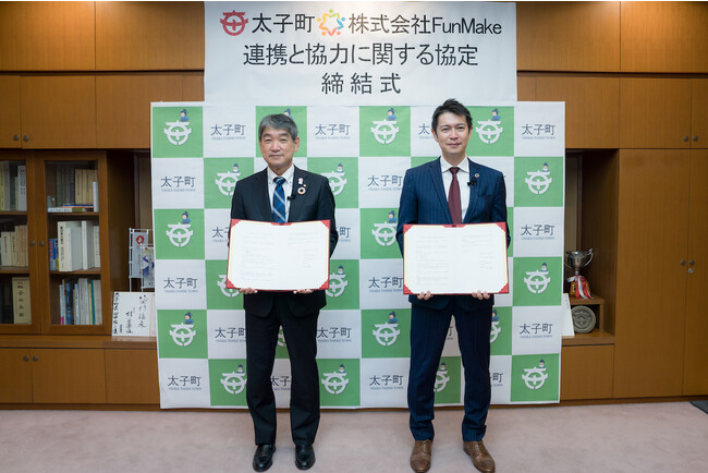 (左から太子町長 田中 祐二/株式会社FunMake代表取締役 市位謙太)