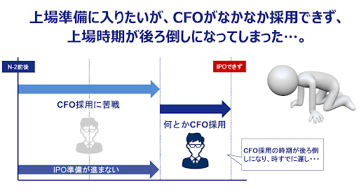 CFOを招聘し着々と上場準備を進めている企業がある一方で、CFOの採用に苦戦し上場準備がなかなか進まないという企業もあります。「上場準備に入りたいが、CFOが見つからず上場時期が後ろ倒しになってしまう」といった相談をいただく事もあり、その様な課題を解決するため、「CFOパッケージ」を開始するに至りました。
