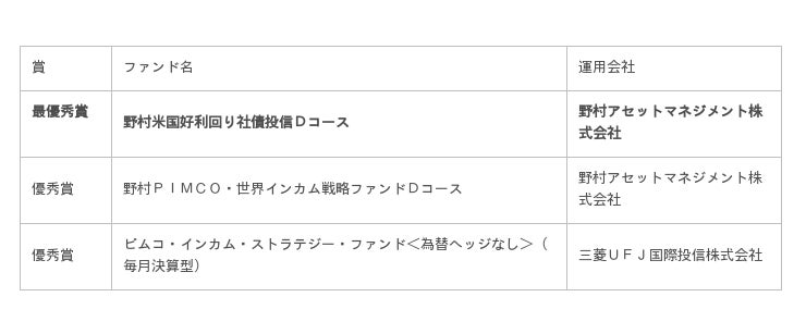 ただし、毎月分配型投信は値上がり益を狙うのではなく、安定的な分配金が目的です。そのため、毎月分配型部門につきましては他の部門とは異なる基準、1.本当の利回りがプラス2.基準価額が1万円以上3.債券型で選出しております。※8部門につきましては、下記受賞投信リストをご参照ください。