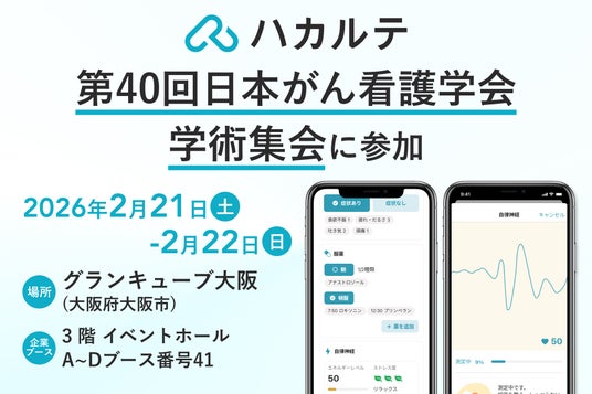 株式会社DUMSCO(所在地:東京都港区、代表取締役CEO:西池成資、以下 当社)は、2026年2月21日(土)から22日(日)の2日間、グランキューブ大阪(大阪府立国際会議場)で開催される「第40回日本がん看護学会学術集会」に参加いたします。当社は、がん患者のQOL(Quality of Life:生活の質)向上を目指すがん患者サポートアプリ「ハカルテ」を提供しており、本学術集会では企業展示ブースを出展し、医療関係者の皆さまに向けて情報発信を行ってまいります。