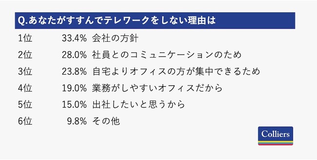 大手総合不動産サービス・投資運用会社であるコリアーズ・インターナショナル・ジャパン株式会社(代表:小笠原 行洋、本社:東京都千代田区、NASDAQおよびTSX:CIGI)は、東京圏(東京都・神奈川県・千葉県・埼玉県)に住む20代~50代のビジネスパーソンの男女601名に、働く街に関する意識調査を実施しました。