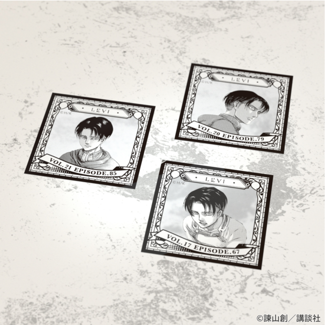 人類最強の兵士であり、調査兵団の象徴であるリヴァイ兵士長の記憶を、コマ状にデザインした“メモリアル・フラグメント(記憶の欠片)”に。