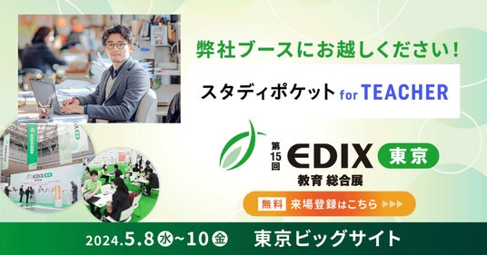 スタディポケット は、5月8日(水)~5月10日(金)に開催される「第15回EDIX(教育総合展)東京」に出展します。