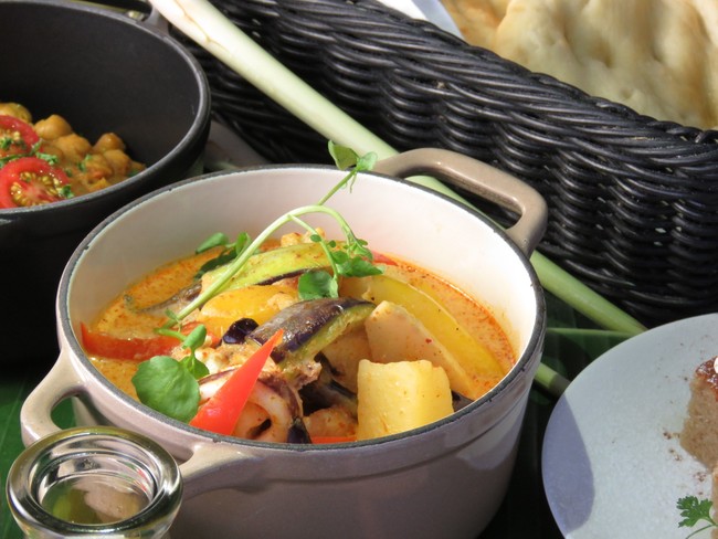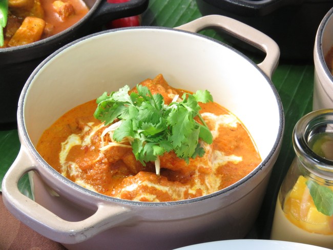 使用し、ココナッツと様々なタイの香辛料を調合してコクの詰まったタイレッドカレーを完成させました。