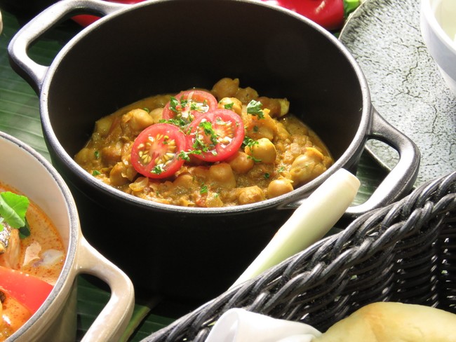 ひよこ豆はとても消化も良く、タンパク質はもちろん葉酸やビタミン類も多く含むとても栄養価の高い食材です。味にはくせがなく、ほくほくしているためカレーにもとてもよく合います。これだけで満足のいく一品です。