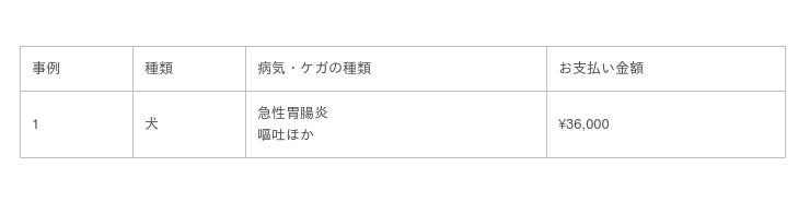 保険金のお支払いは、上記のように高額なものに限りません。次に、平均的なお支払い事例としてペットの急性胃腸炎、嘔吐、下痢の診療をご紹介します。