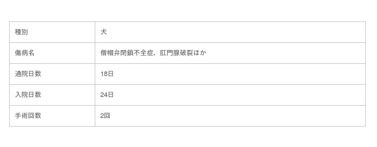 事例の犬の僧帽弁閉鎖不全症の通院日数、入院日数、手術回数について