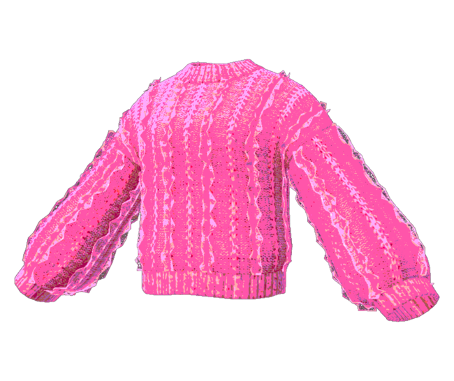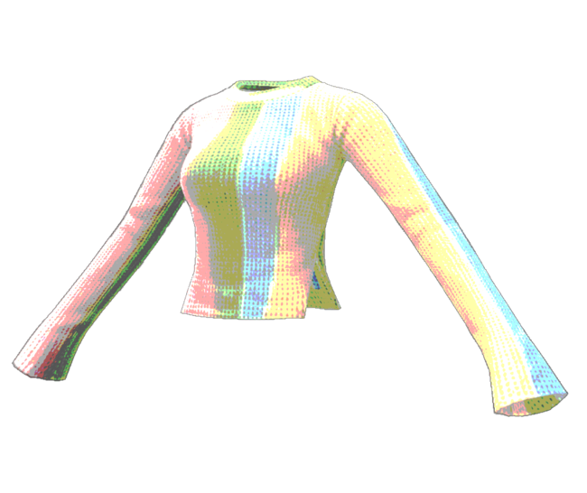 実際に販売されるこのフィジタルコレクションは10種類のアイテムで構成され、ベスト、セーター3型、ハートシェイプのトップス、ストラップレスドレス、フェザー付きのターコイズフレアパンツ、スカート2型、バッグ、チョーカー、イヤリング、ブーツなどのアクセサリー類が揃います。