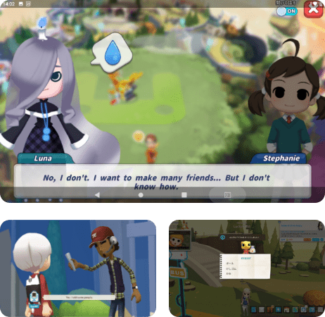 生徒はストーリーの主人公になり、キャラクターたちとのリアリティのある会話を体験し、