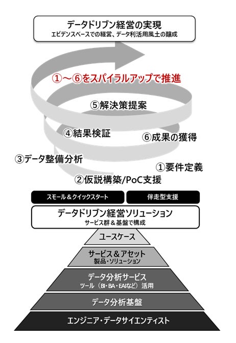 これにより、何から検討してよいか分からない、限られた人員で対応しなければいけないといったお客さまのデータドリブン経営推進の障壁を下げ、迅速に課題解決を図ることで、経営や事業改革の実現を支援します。