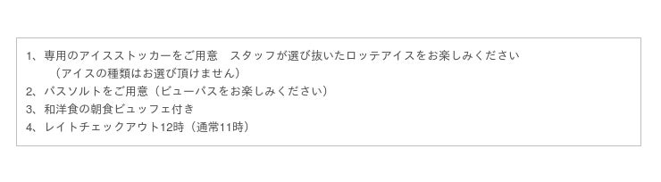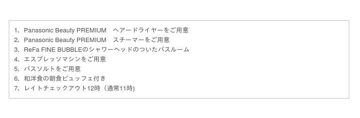 いつもの疲れを癒し、休日を満喫して頂くための特典をつめこみました。