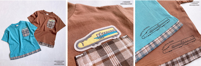 ●〈Dr.イエロー〉〈ハヤブサ〉のグラフィックが目を引くTシャツは、夏らしいチェック柄の異素材生地をポケットや裾に配し、レイヤード風にデザインしました。1枚でおしゃれな着こなしが叶うデザインです。