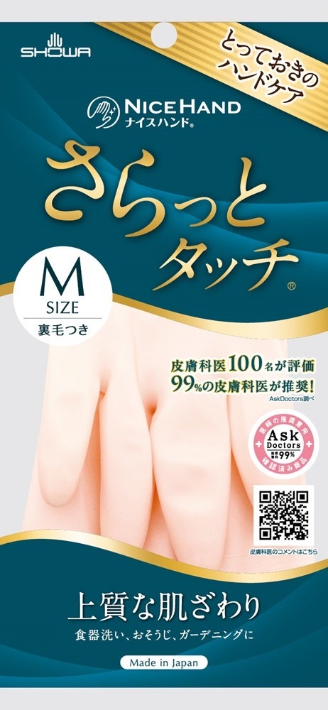家庭用・産業用手袋の専業メーカーのショーワグローブ株式会社(本社:兵庫県姫路市、代表取締役社長:星野達也)は、家庭用手袋「ナイスハンドさらっとタッチ」と「ナイスハンドさらっとタッチセミロング」が、AskDoctors評価サービスで「医師の確認済商品」に認定されたことをお知らせいたします。