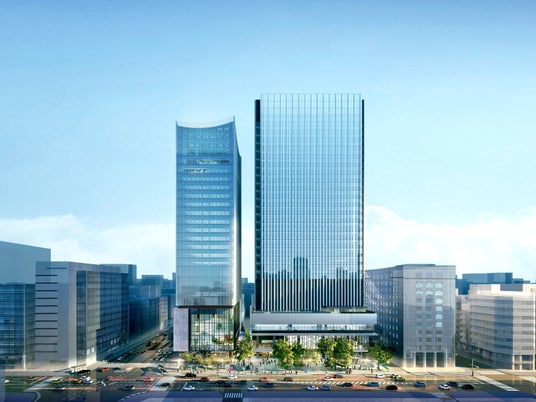 京橋彩区完成予想パース 左:ミュージアムタワー京橋/右:TODA BUILDING (C) (株)日建設計