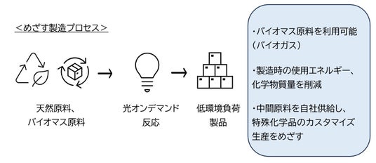 ※1 光オンデマンド合成法:バイオメタン、クロロホルムを原料に用い、光反応を活用することで小規模多品種の有用化学品生産が実現できるプロセス。神戸大学大学院理学研究科・