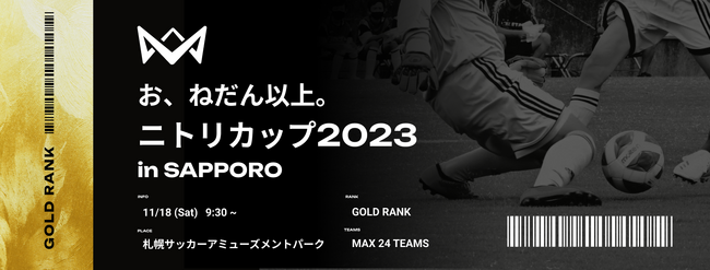Now Do株式会社(本社:東京都新宿区、代表取締役:本田圭佑)と株式会社ニトリ(本社:札幌市北区、代表取締役社長:武田政則、以下ニトリ)は、U10のためのサッカー全国大会【4v4】の全国大会予選ラウンド・ゴールドランク大会「お、ねだん以上。ニトリカップ2023(以下、本大会)」を、2023年11月18日(土)に北海道札幌市東区にある「札幌サッカーアミューズメントパーク」にて開催することをお知らせいたします。本大会の参加条件は先着順で24チームとなり、優勝チームは12月に開催する全国大会への出場権を一発で獲得することができます。更に副賞として全国大会の旅費30万円が贈呈されます。