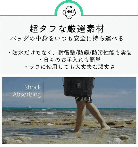 防水性をはじめ、シンプルデザインとタフな素材が実現する安心感と使いやすさ