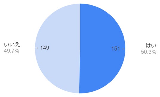 はいと答えた方が僅差で2票上回っていましたが、割合はほぼ半々であることがわかりました。