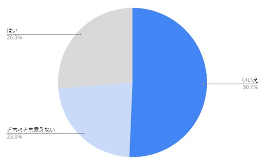 次いで「はい」が26.3%、「どちらとも言えない」が23.0%とほぼ同率です。