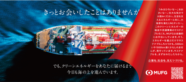 また、MUFGは、社会やお客さまの課題に寄り添いながら共に活動を行うことで、世の中のチカラになることができると考えています。そこで、投融資先企業のサステナブルな取り組みを金融面で支援することで、MUFGがカーボンニュートラルな社会の実現を推進していることを発信すべく、昨年12月より公開しているムービー「サステナブルしちゃう日。~ Sustainable Moments」[1]に続いて、新聞広告を掲出します。