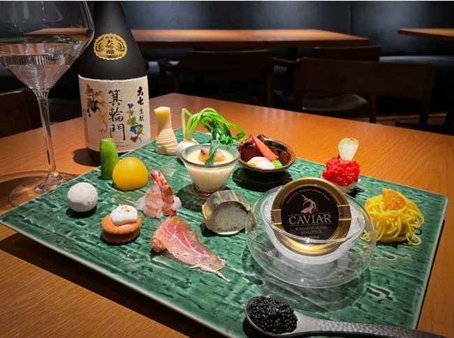 無添加キャビアと和食のコラボレーションを楽しむコースを日本酒とともに