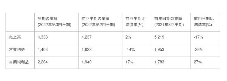 ▲表の説明: KRAFTONの連結財務諸表に基づく2022年第3四半期の営業(暫定)実績(単位: 億ウォン)