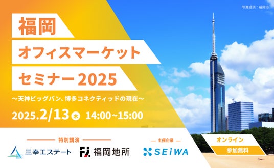 株式会社清和ビジネス(本社:東京都中央区 代表取締役:勝本 浩史)は、2月13日(木)にオフィス移転を検討中の経営者や総務・経営企画部門のご担当者を対象として、福岡のオフィス市況や「天神ビッグバン」「博多コネクティッド」再開発の状況について解説するオンラインセミナーを開催いたします。