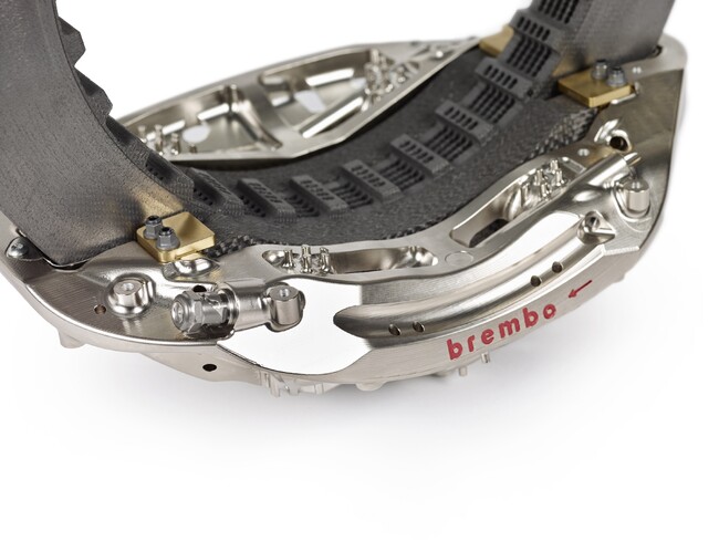 正確には、9チームにブレンボ製、1チームにAPレーシング製のブレーキキャリパーが搭載されます。APレーシングはコヴェントリー(イギリス)にある、ブレンボ(本社・ベルガモ)のグループ企業です。